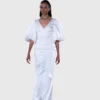 Channel the house of Chidinma’s love of refined glamour and sophistication in this voluminous structured sleeves silk gown.